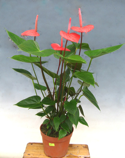 “陽(yáng)光紅心”紅掌植株中小型,株型緊湊,花紅色,呈三角狀,花型平展,高出葉面5-10cm,紅色肉穗花序,花梗紫紅;易分蘗,叢生性好,抗病性強,可用于盆花觀(guān)賞,水培觀(guān)賞,室內綠化等。
