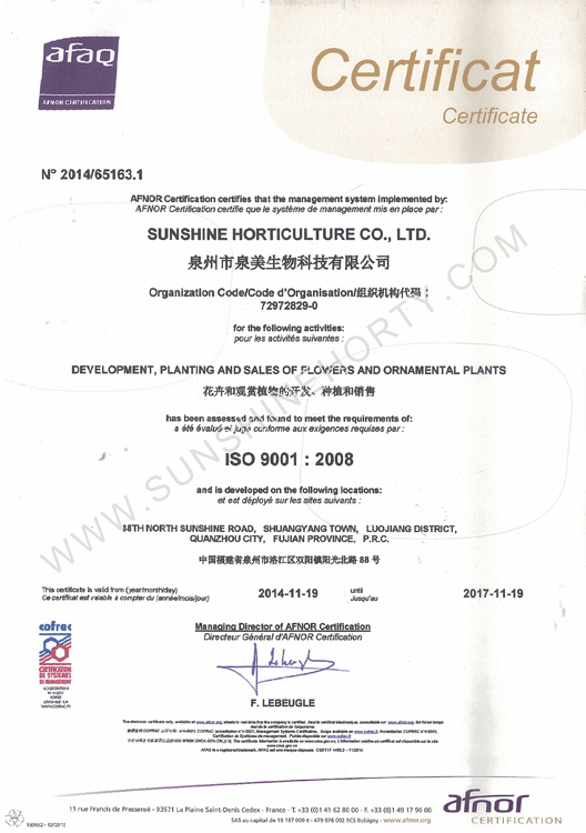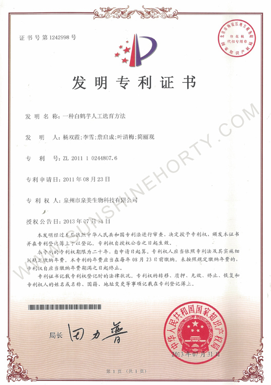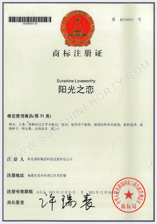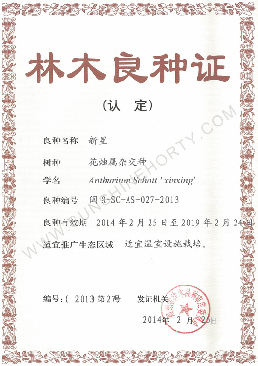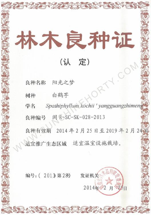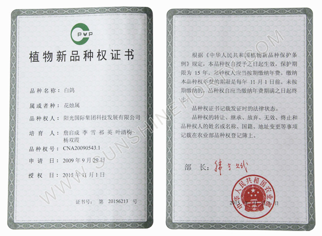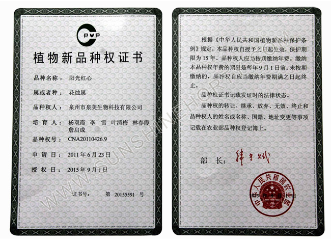公司先后申報了20多項專(zhuān)利,獲準專(zhuān)利15個(gè),通過(guò)新品種省級認定4個(gè)。自主選育的新品種“新星”紅掌、“紅心”紅掌獲農業(yè)部新品種權保護;“陽(yáng)光之夢(mèng)”,“陽(yáng)光之戀”,“陽(yáng)光之星”系列白掌新品種獲產(chǎn)品商標保護。公司對自主知識產(chǎn)權進(jìn)行了有效保護。